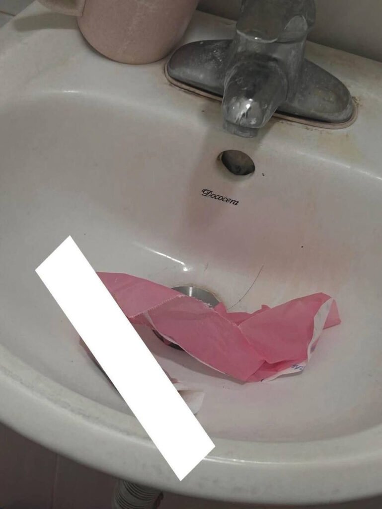 hình là đến tháng vứt bờ vờ sờ trên bồn rửa mặt CẢ MỘT NGÀY, nhiều lần “VÔ TÌNH”