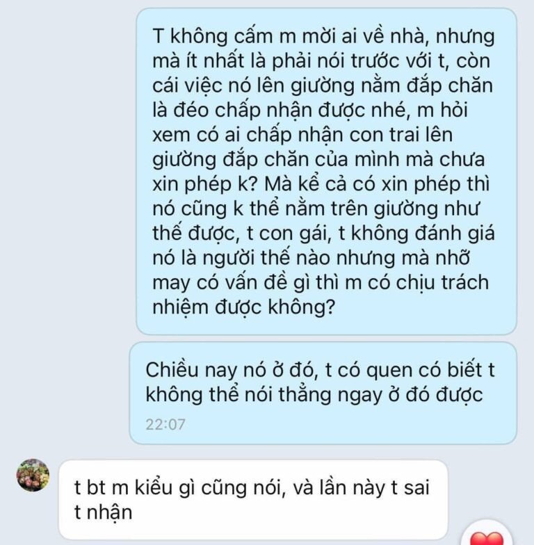 phải nhắn cho t, biết t sẽ nói mà k biết đường xin lỗi luôn đi. Chăn thằng kia đắp là của