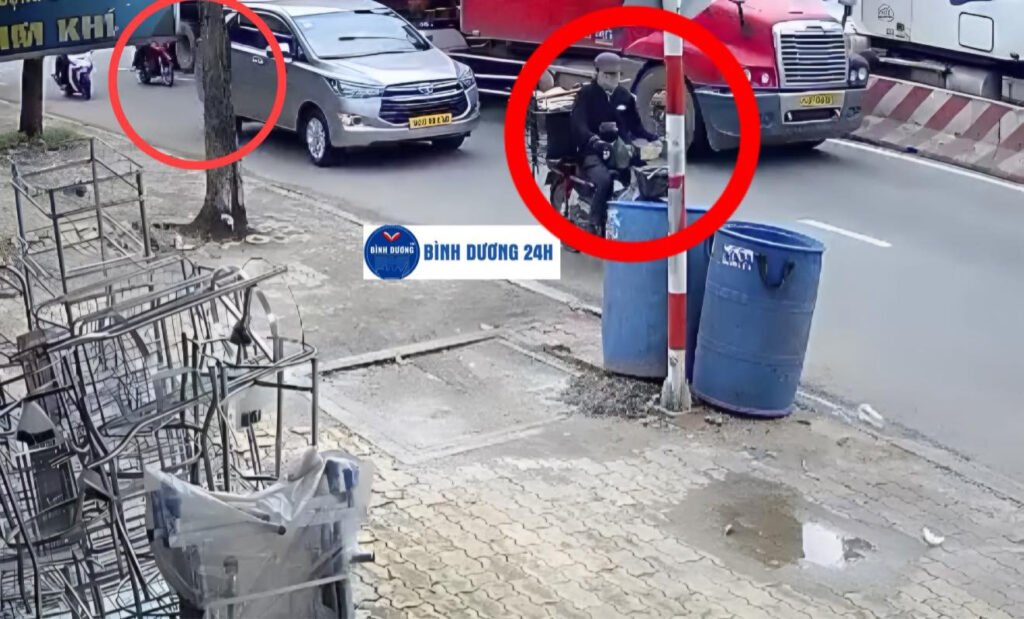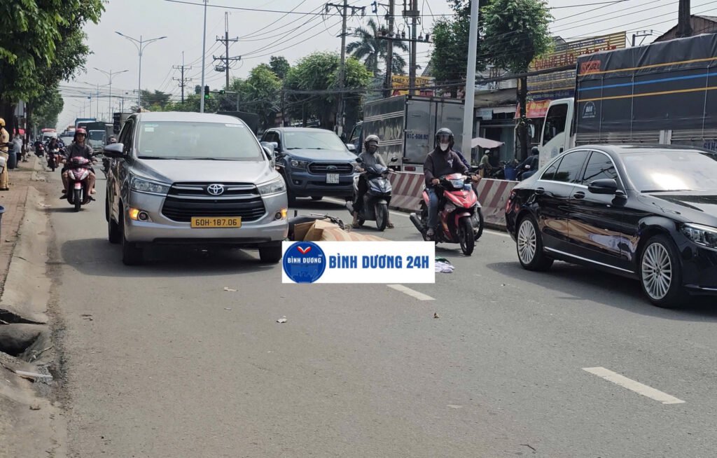 Nam shipper vừa bị container ca’n tuvonh trên đường DT743 (gần ngã 3 Vietsing) ngay