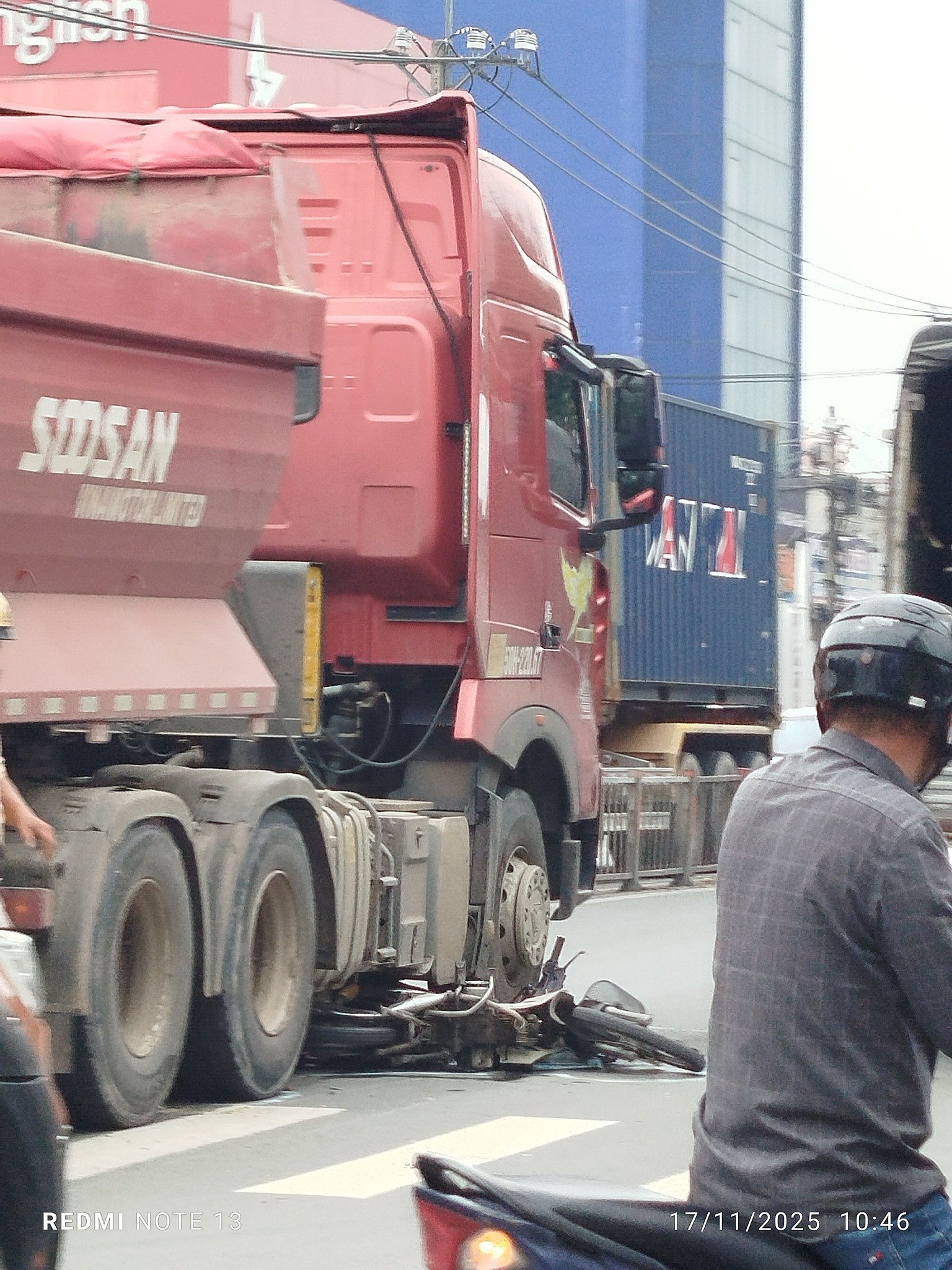 Người đi xe máy chở dừa rơi vào góc khuất xe Ben, bị gãy chân không ảnh hưởng tới