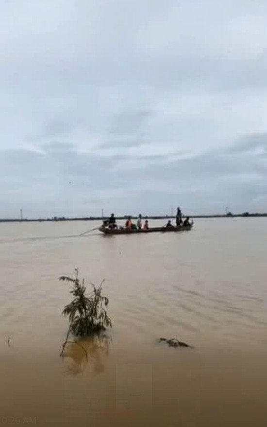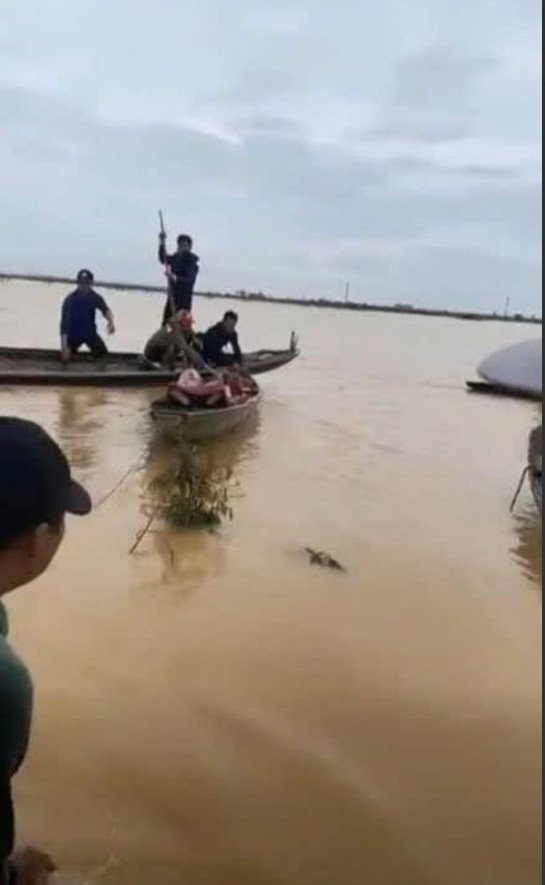 Không may, chiếc ghe bị lật giữa dòng nước xiết. Hai người phụ nữ đi cùng (trong đó