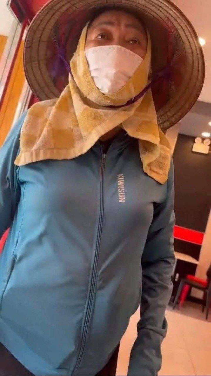 chiên, thì một chị tầm ngoài sáu mươi, áo chống nắng xanh, đôi mắt đỏ hoe lững