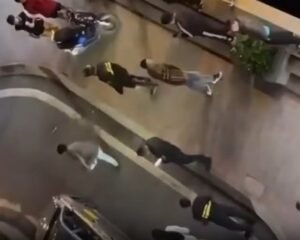 Các em học sinh đi dàn hàng ngang, sấp 3 luôn, 1 em co giật...
