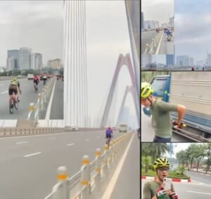 Một người đi xe đạp di chuyển trong làn dành cho ô tô trên tuyến...